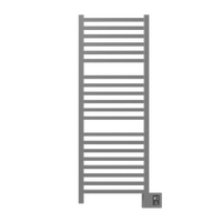 The dual-purpose Towel Warmer and Radiator with 20 brushed horizontal bars, in a 6-6-8 configuration, features a modern design with square bars. It is perfect to warm and dry 3 large towels, while warming the bathroom and keeping it dry and mildew free. Included is a Digital Heat Controller, which allows you to choose between 9 heat levels. This unit can be installed vertically, horizontally or upside down depending on the application. The distance from the wall can be adjusted between 4" and 4 3/4". Unit dimensions are 20"W x 54"H. Accessories such as Bathrobe Hangers and Programmable Timers can be added to the unit for extra functionality. Wiring is also available on the left side, by special order.